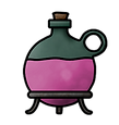 D’un geste le maître des énigmes fait apparaitre sept potions. Parmi elles deux grandes (violette et blanche), deux petites (orange et rose) et trois moyennes (bleue, verte et rouge).